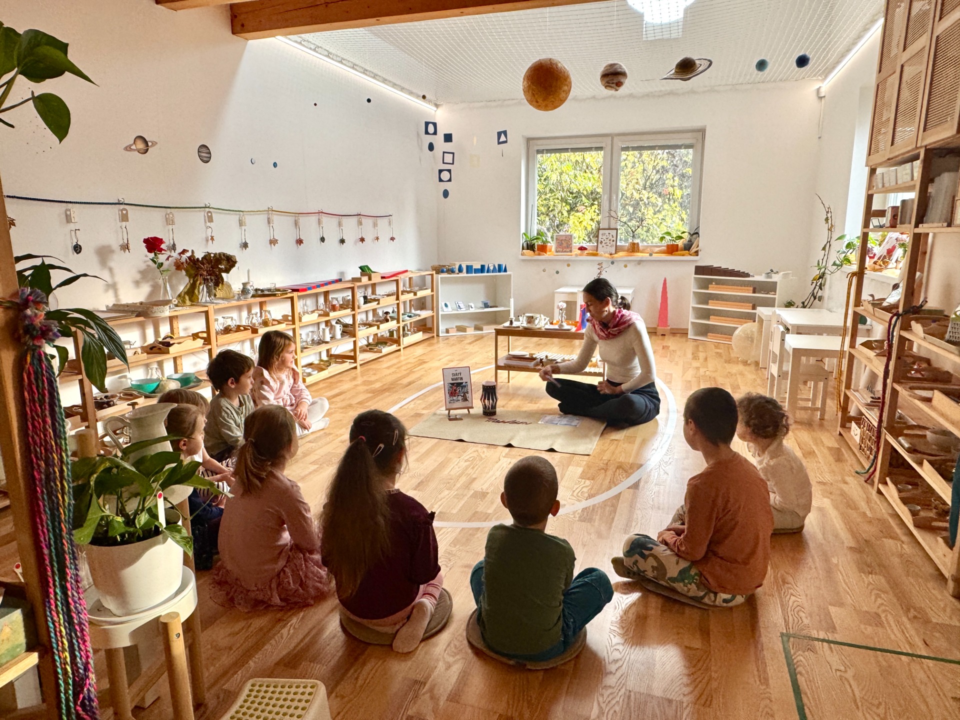 Vzdelávanie podľa montessori princípov v pripravenom prostredí, individuálny prístup, práca s vnútornou motiváciou